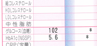 4月の簡易検査の結果が返ってきて、血糖値は102、ヘモグロビンA1cの値は5.6だった。1月が5.8、3月が5.7だから、3回連続で改善している。