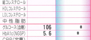 3週間経って、結果が戻ってきた。もっとも気になる空腹時血糖は106、ヘモグロビンA1cは5.6で、4月に医者で測った時と変わらず正常値である。
