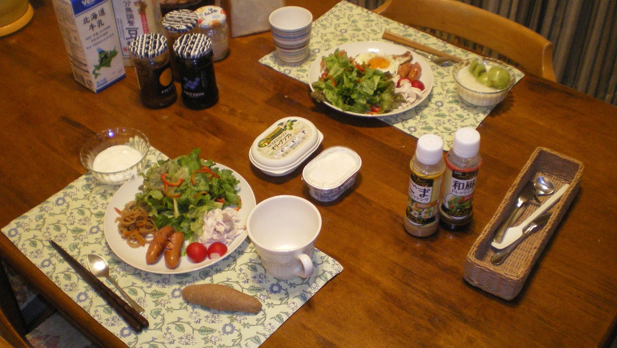 食パンは糖質制限後買っていない。朝食は奥さんの作ってくれるブラン(ふすま)の入った手作りパンで、1食の糖質は20gほど。許容範囲内である。小さなパンに、チーズや蜂蜜、ジャム、マーマレード、ヌテラなどをちょっとずつ付ける。以前は6枚切りを2枚ずつ食べていたことからすると、糖質は比較にならないほど少ない。
