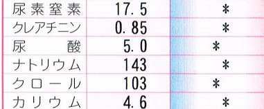 ところが今回の結果をみると、 クレアチニンは0.85である。クレアチニンは昔は人間ドックの検査項目に入っておらず、入ってからもしばらくは小数点以下1ケタだった。だから昔の0.9は0.85から0.94の可能性があるのだが、ともかく0.8台というのはこれまであまりなかった数字である。