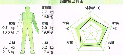 してみると、前回の結果はやはり誤作動というか異常値で、今回の方が現実に近いと思われる。それでも体脂肪率は20.4%でこれまでの水準からするとかなり低いし、体幹部脂肪量は9.0kgと10kgを下回っている。いずれにしても、過去十数年なかったことである。