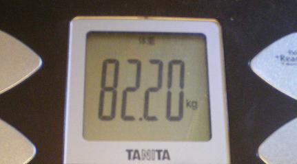 毎日トレーニングした甲斐があって、82kg台という日が時々ある。しばらく前は92kg台で相当うれしかったのに、それより10kg軽い82kg台である。