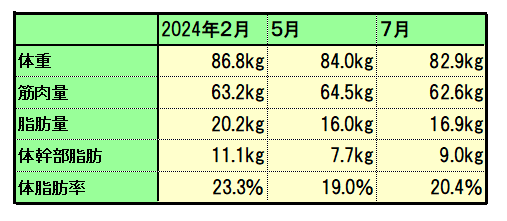 2024年5月 体脂肪率19%!!・ラクトアイス 2024年6月 82kg台達成!!