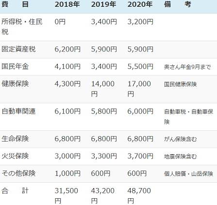 リタイア前には税・保険料として月4万円を見込んでいたのだけれど、おそらくこれが下限である。2022年からは介護保険料が別建ててで請求されるし、これから先自賠責保険料はどんどん増えるはずである。