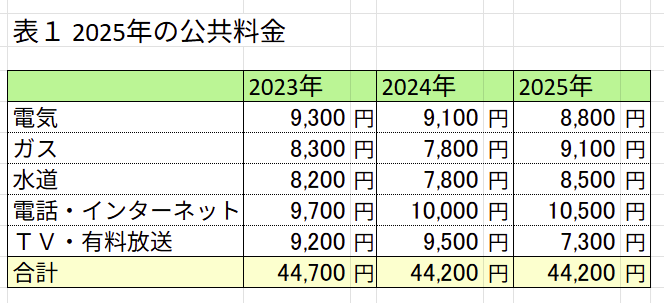 1.2025年の公共料金