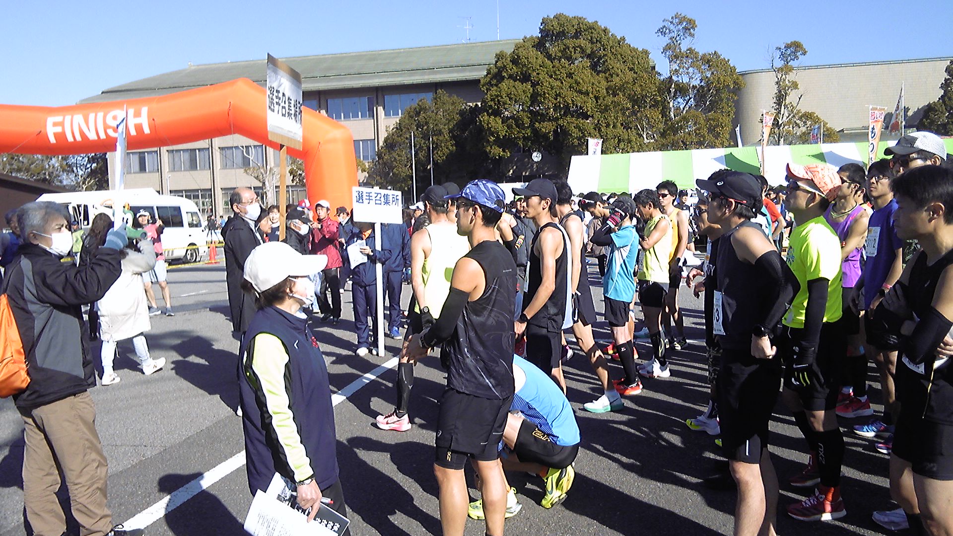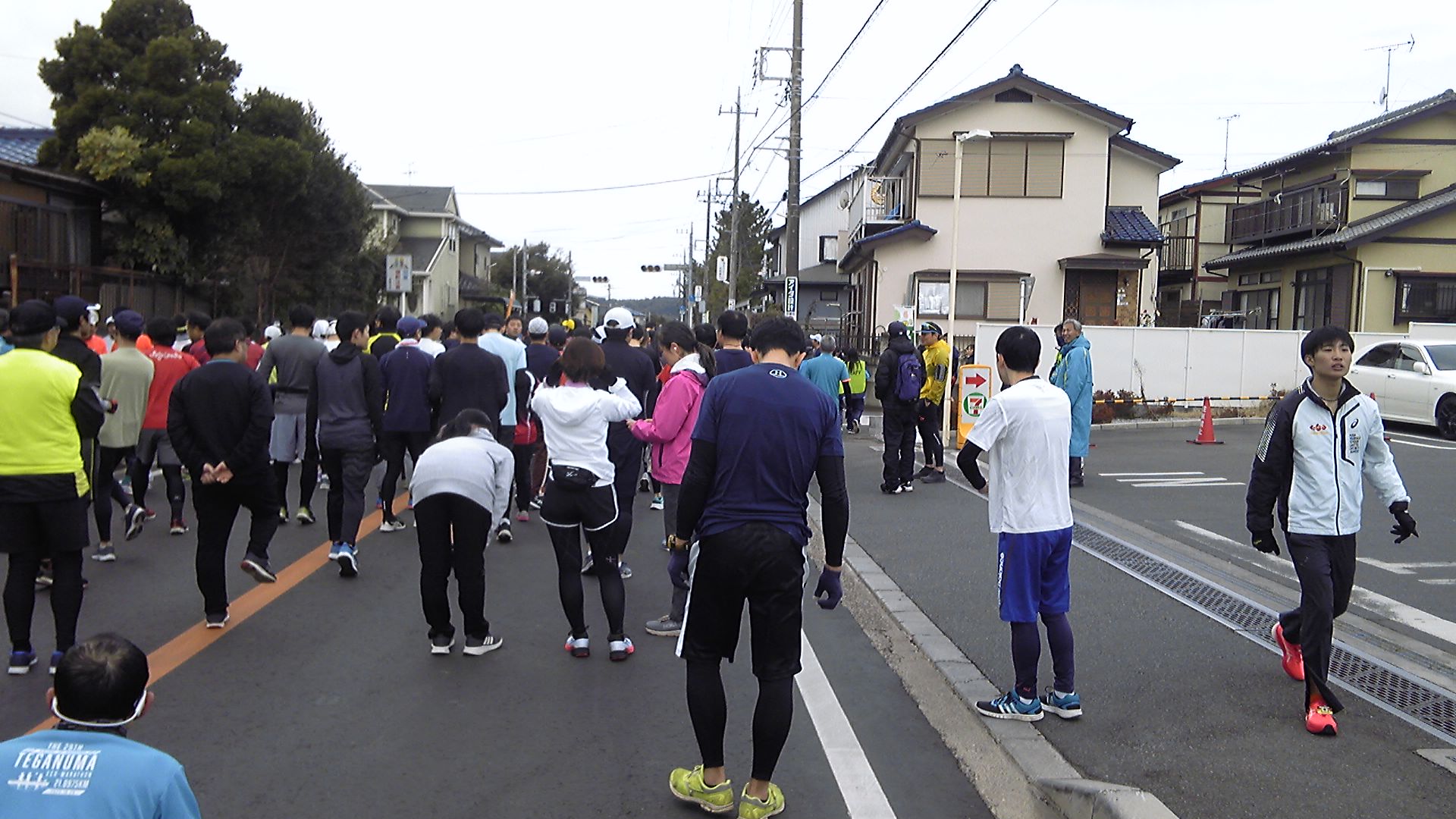 スタート地点で10分ほど待機。何しろ寒いので、ウォーミングアップでダッシュする人が何人もいた。