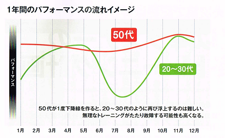次のシーズンのためには、意識的にこの時期控えめにするのが好ましいかもしれない。意図的にバイオリズムを下向きにするのである。次のトップシーズンが12月から2月だとすると、6月から8月はボトムにする。
