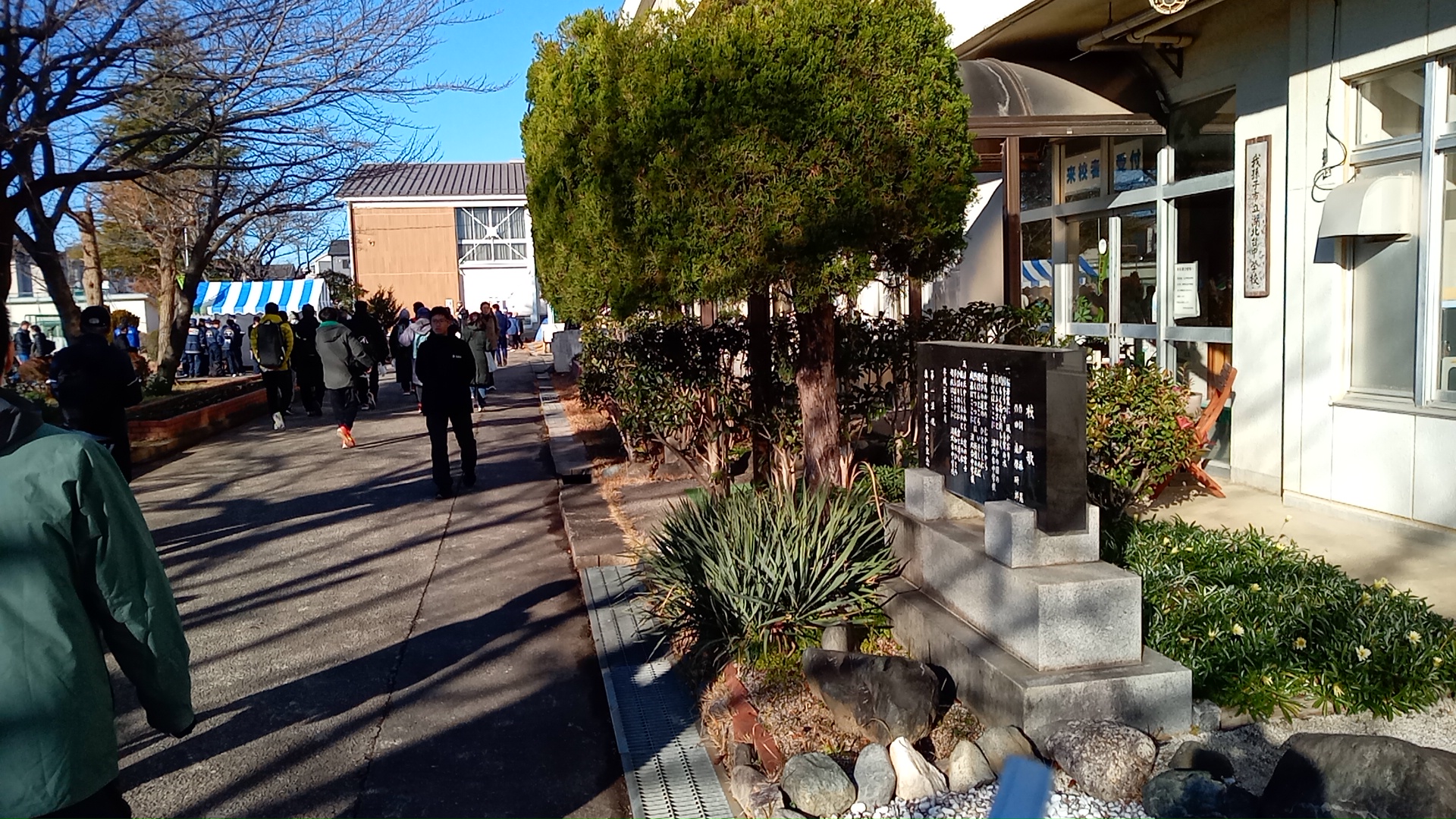 大会前は3月並みの暖かい日が続き、朝の冷え込みもそれほどでもなかった。当日朝は若干冷え込んだが、それでも平年並み。昨年のような凍えるような寒さでないのは助かる。木下に車を止めて、湖北まで常磐線。湖北駅から会場まで、参加者の列に続いて歩く。9時過ぎに到着。