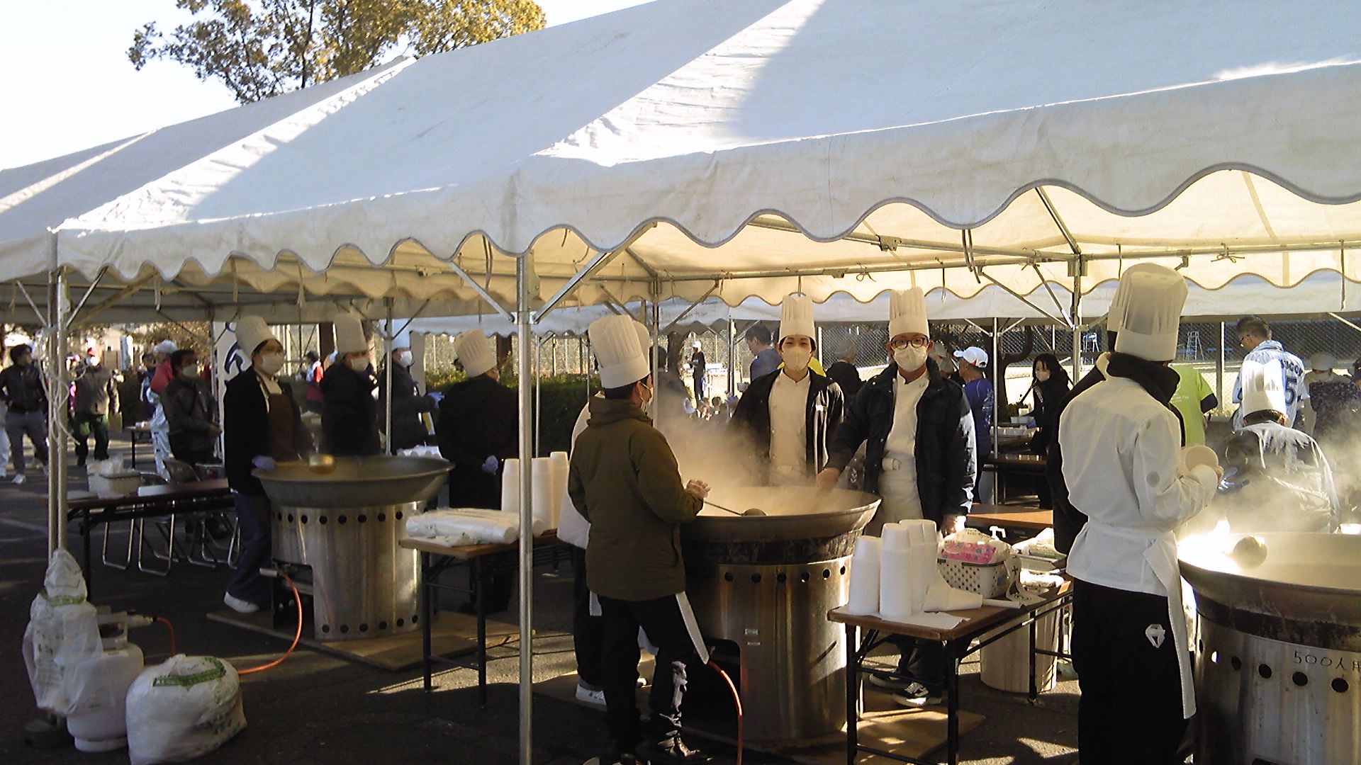 今年はバナナがないのは残念だったが、できたての豚汁を提供していただき温まった。つくばの調理学校の生徒さんが作ったとのこと。