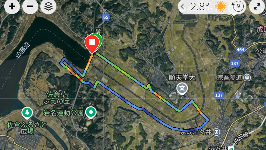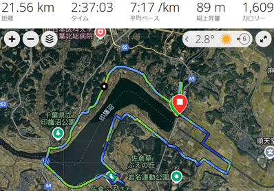 前日に続き、佐倉マラソンコースで練習。これで走っていないコースは、草ぶえの丘周辺の約3kmだけになった。