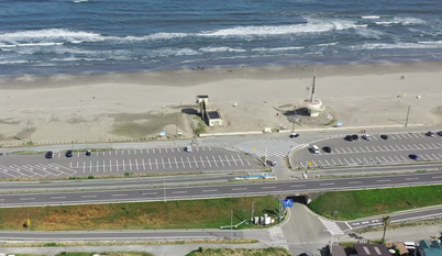 先頭走者とすれ違っても、まだ九十九里浜には達しない。ずいぶん先なのである。今泉パーキングでPA方向に誘導され、ここが第二給水所である。専用道に入る前の第一給水所では取らなかったので、ここではいろはすを給水。間もなくサンライズ九十九里で左折し、海岸沿いの自動車専用道に入る。