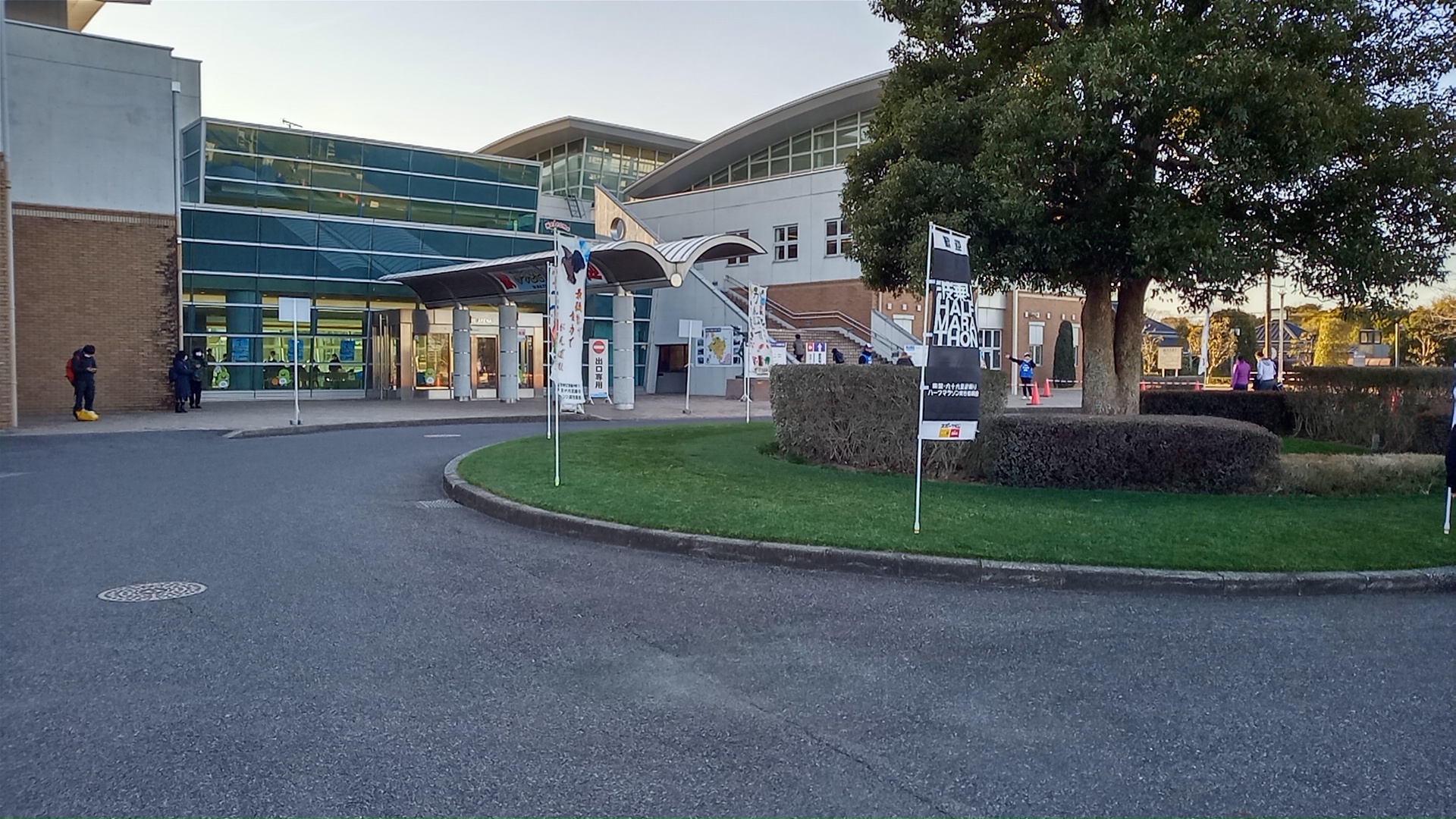 いよいよ今シーズンのメインイベント、九十九里波乗りハーフマラソンである。 昨年・一昨年はご近所の栄町ドラムマラソン(先週開催された)に参加していたが、距離が数百m違うのと、ネットタイムを計測しないのがひっかかる。いずれもすぐに解決可能なのにそうしないのは、特に町外から来なくても結構ですというメッセージに感じられる。 そして、3月の佐倉マラソンが気乗りしないのは、運営にホスピタリティがないからである。昔から開催している大会なので応援したいが、地元が惰性でやっているのにあえて協力する必要はない。ではかすみがうらはどうかとなるが、最近の4月は暑い。 九十九里波乗りハーフは、八街でパンフレットを配るくらい熱心である。佐倉で呼ばない(呼べない?)Qちゃんがゲストランナーだし、自動車専用道路を止めて走るというのは魅力である。なのに参加料はハーフの相場である6,000円。手賀沼エコマラソンより低価格の設定である。 ホームページをみると地元のバックアップもたいへん盛んで、出店とかイベントが数多く出る予定である。駐車場は有料だが用意してくれている。夏場と違いこの季節に観光資源のない地域だけれど、主催者が熱心ならば千葉県民として応援しようという気になる。 子供の小さい頃は蓮沼や大原、鴨川あたりまで運転したものだが、最近はとんとごぶさたである。限界ニュータウン探訪記の管理人殿もこちら方面にお住まいで、聞き覚えのある地名がよく出てくる。かつてバブル時代に、東京から2時間以上かかるのに宅地開発されて、いまや限界ニュータウンが散見されるからである。 東金は成田から「はにわ街道」を南下するのが一般的だが、千葉ニューに越してから二十年以上そのルートで行っていない。規制時間があるのに不案内な道はよろしくないと思っていたら、八街から国道をまっすぐ行けば東金ということに気がついた。八街ならマラソンで何回も行っている。 それはともかく、今シーズンの締めくくりとしてきっちり準備しなければならない。特に、秋の将門ハーフが不本意だったので、ここは満足できる走りがしたい。 秋以来、月に1度ハーフマラソンの距離を走っている。今年に入って元旦に1度、2月に2度、いずれも歩くこともなく、どこも痛くならずに走ることができた。1週前には春のような陽気でちょっと暑いくらいだったが、大会前は再び寒気が下りて真冬並みの寒さが戻ってきた。 大会当日は天皇誕生日で祭日である。翌日が振休となるため世間では3連休となるが、この時期だから渋滞は考えにくい。指定駐車場に7時半ということなので、6時前に家を出発する。少し前はまだ真っ暗な時間だったが、日が長くなったので少し明るい。 会場の東金アリーナには7時半過ぎに入った。アリーナといってもただの体育館だが、陸上競技場もあってグレードは高い。ただ、3,000人募集のところ3,500人参加と言っていたので、体育館はほぼ一杯で座席も更衣室も余裕はほとんどない。 外は強風かつ気温が低いので、みんな体育館から出ない。場所がないので8時半には外に出る。開会式が始まるからである。吹きっさらしのスタンド席には座る場所があった。Qちゃんが、「私の家はここから車で30分です」と挨拶している。私も1時間半で着いた。 スタート順はD。スタンドからは待機状況が見えるので、Dスタートがスタンド前に来るタイミングで下りる。Eスタートまであるけれども、実はEにはほとんどいない。あらかたDスタートまでに指定されている。スタート地点は陸上競技場のバックストレッチの外側。10分前にそちらに移動する。 九十九里波乗りハーフは、自動車専用道路を走ることができる。なのに参加料は他の大会とほぼ同じ、手賀沼エコマラソンよりかなりお手頃価格である。(写真は大会HPより) 九十九里ハーフマラソンの会場は東金アリーナ。寒風の中、待機場所があることはありがたかったが、残念ながらオーバーキャパシティだった。