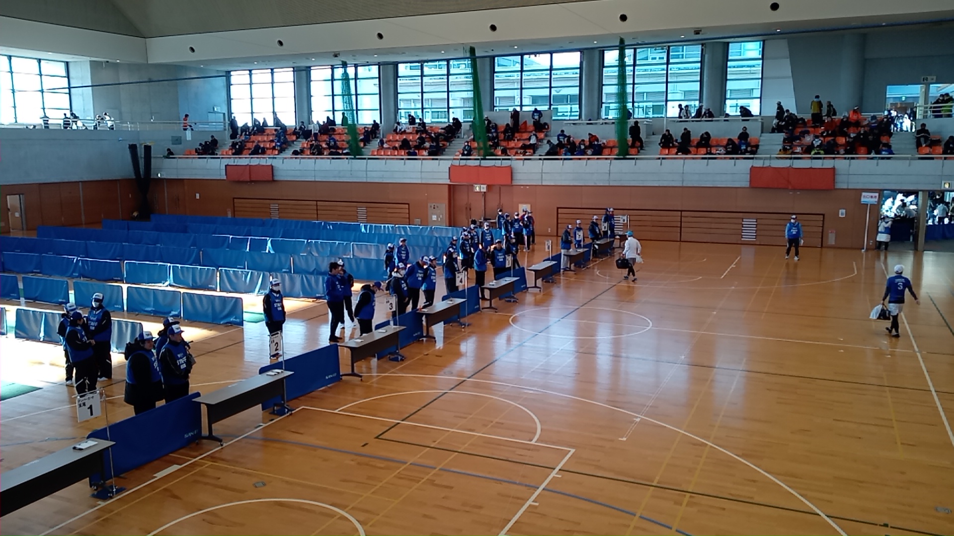 東金アリーナ内部。1Fは荷物預かりで、たいへんスムーズだった。惜しむらくは2階座席が一杯となり、開会式前には更衣室内にみんな座り込んでいた。