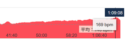 心拍数は、九十九里マラソンのラスト1kmとほぼ同じである。もっともあの時は20km走った後、今回は9kmでこれである。タイムも、九十九里は7'23"でとどめたからずいぶん遅い。ただ気温も湿度も高いし、年齢的にこのあたりががんばれる限度、歩く一歩手前で耐えたとはいえる。