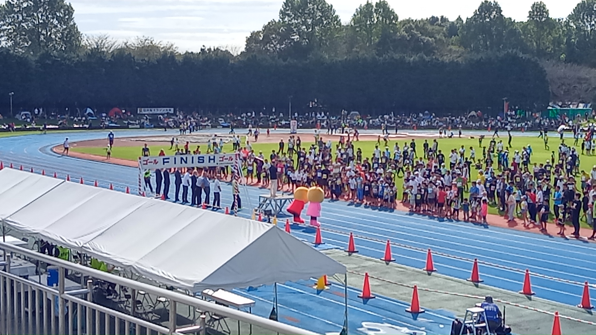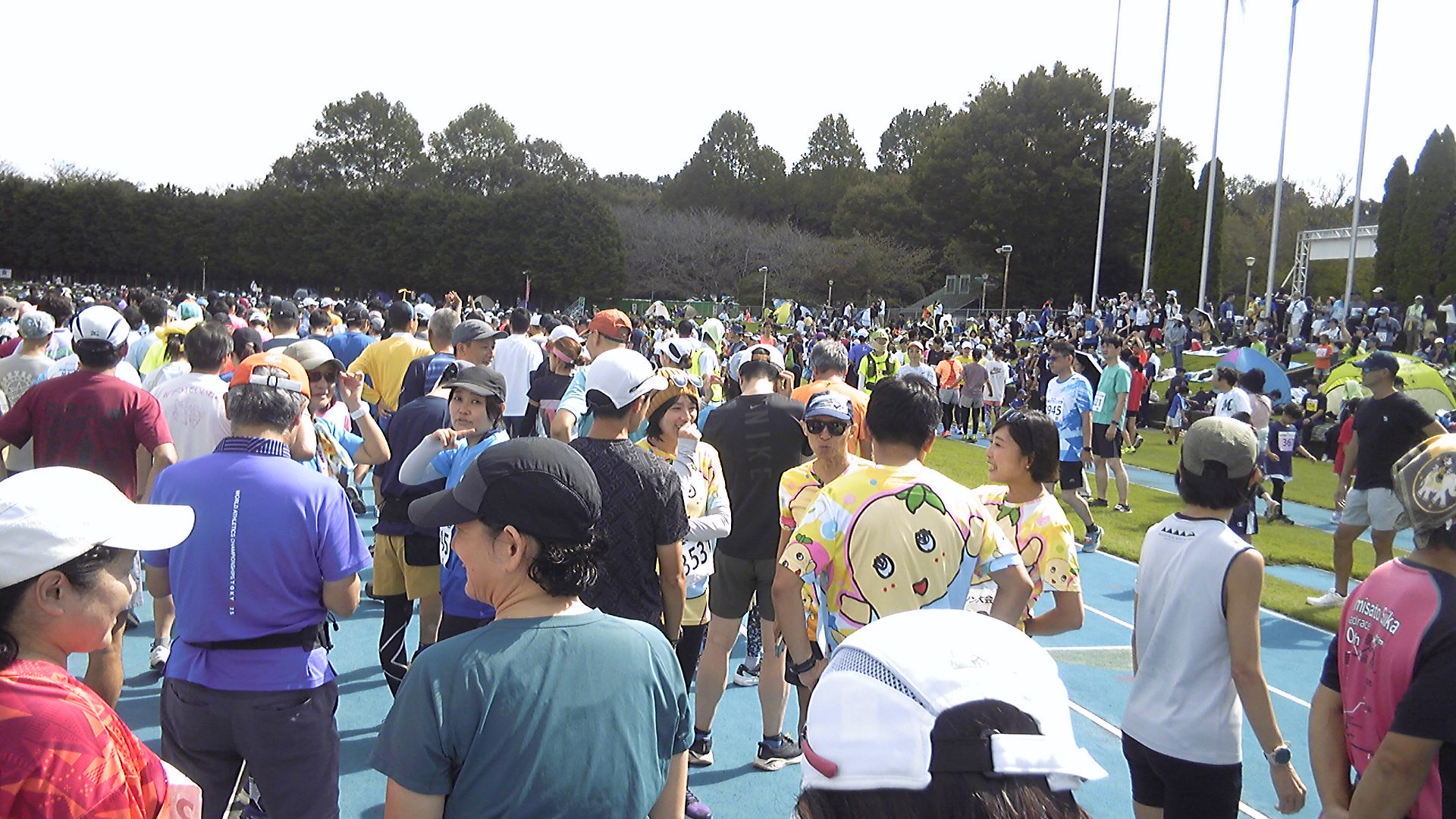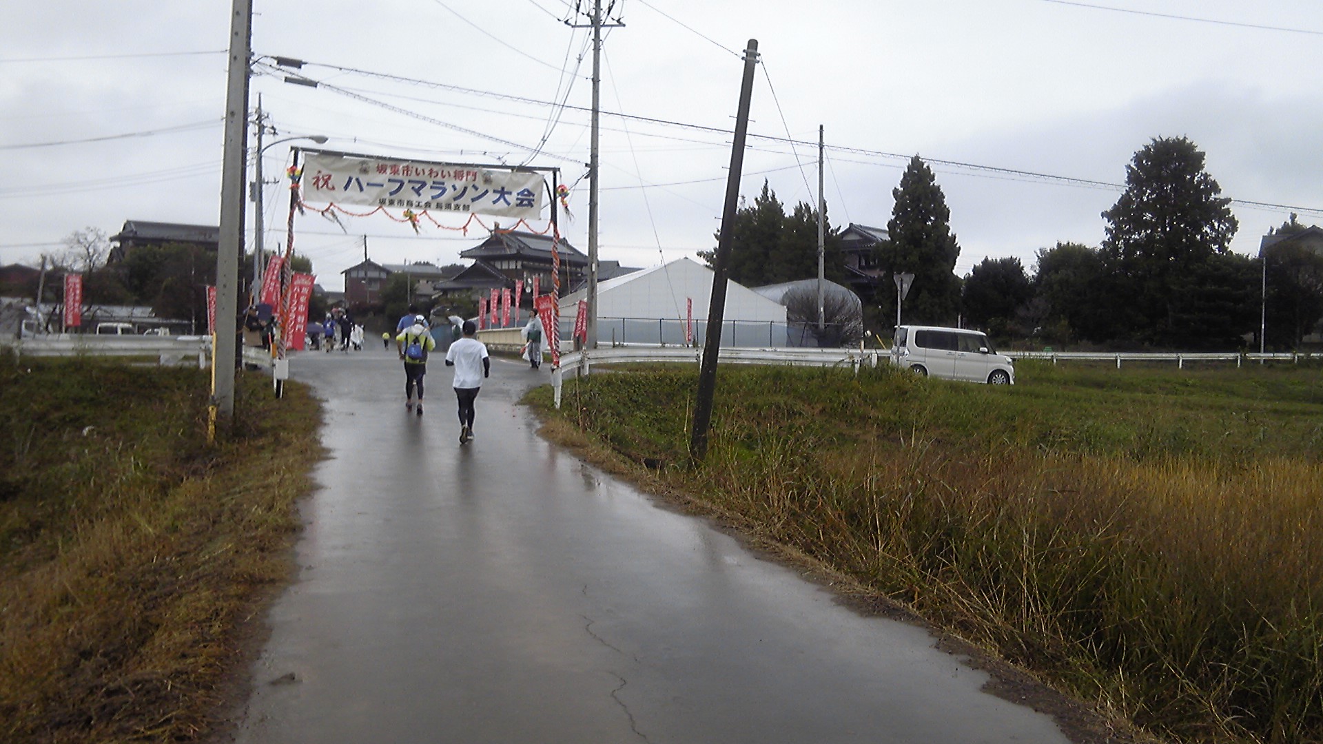 朝方霧雨が降ったがその分冷え込まず、風はほとんどない。雲が厚く、気温も15℃くらいしか上がらない予報。走るには絶好のコンディションで、つくばのみなさんも快走できるだろう。私もぜひあやかりたいところ。