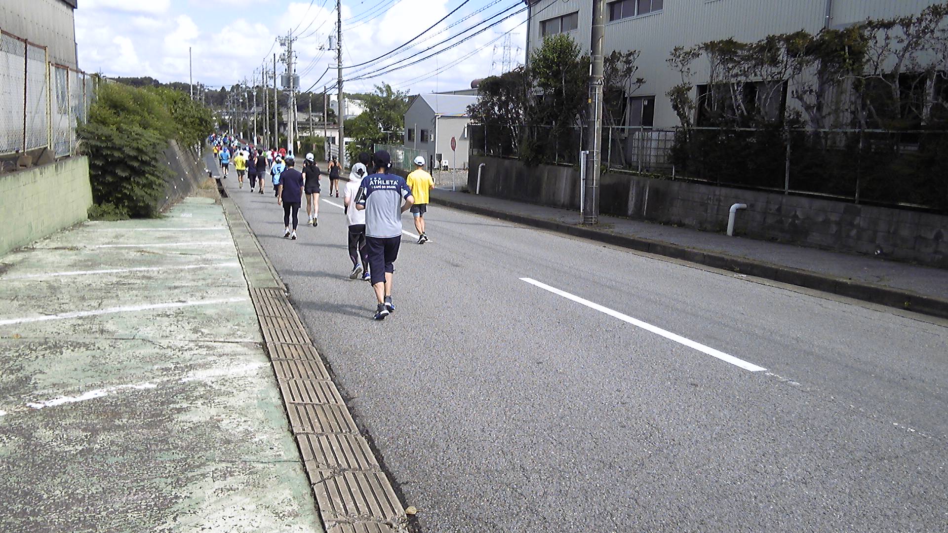 本番レースでは鮮魚街道を左折して工業団地に向かうが、この日は交通規制していないので交差点でいま来た道を戻る。