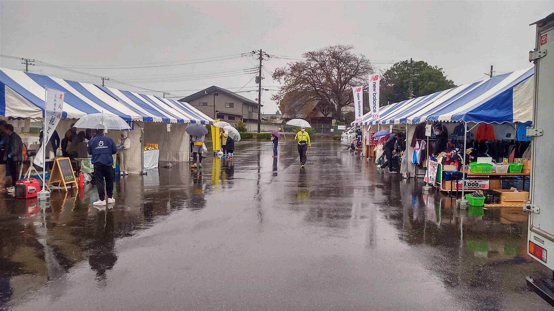 この前走った将門マラソンがちょうどこんな天気だった。前日も翌日もマラソン日和で、当日午前中だけ大雨。大気は土日も平日も分からないから確率の問題、いわゆる偶然なのだが、開催関係者も参加者も気の毒である。DNSにするといっても、きょう日参加費があればずいぶん買い物ができる。