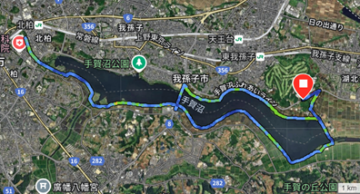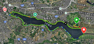 WEBを探すと、手賀沼周回コースというのがあるらしい。佐倉と同じくサイクリングコースだが、自転車道と歩道がちゃんと分かれているようだ。距離も約20kmなので、工夫すれば21kmコースを設定できる。(手賀沼エコマラソンは、湖北台まで往復してハーフ)