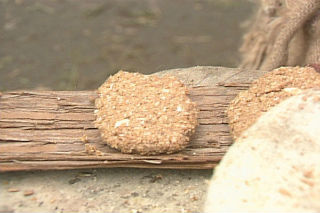 縄文時代の保存食。クリやイモを砕いて固めたもの。邪馬台国でも漁による獲物がない時には、こうした保存食を食べたであろう。