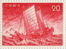 当時の船は動力もなく風力と人力に頼った小さなもので、ジャンク船と同様のものであった。天候や風向き、波の高さに大きく影響を受けたと思われる。出典:切手サロン「記念の切手」