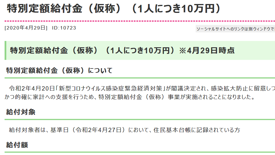 何が言いたいのかというと、もともと税金など最小限にすべきで、こうした時期には請求や納付を猶予して当然だし、「10万円給付」などと偉そうにしないでくれということである。そもそも、誰のカネですかということである。