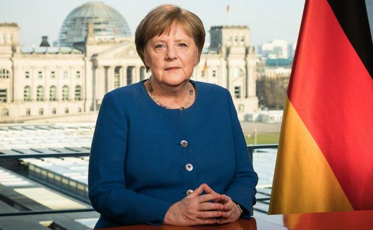 コロナ問題で国民に向けテレビ演説するドイツのメルケル首相=ドイツ政府HPより