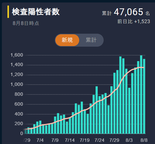 幸いに、重症者が少ないので医療現場はさし迫った状況にはなっていないようだが、一歩間違えば重症者があふれかえる事態になりかねない。まだ夏なので、症状が出ないで済んでいるだけかもしれない。