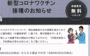 印西市でもワクチン無料接種のお知らせが届き、先週、家の奥さんが1回目を打ってきました。