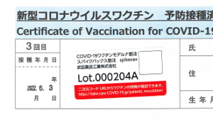 今回のワクチン接種証明は誰かがサインしている訳ではなく、代わりに二次元バーコードがプリントされている。見たところメーカーが作ったバーコードなので、製造地や工場、製造日やロット番号が入っているのだろう。まさに、原産地証明そのものである。