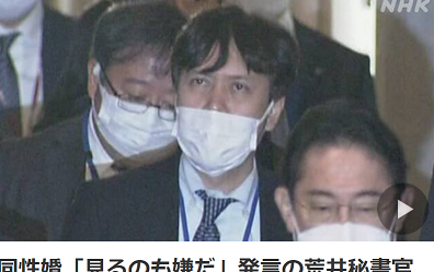 「同性婚なんて見るのも嫌だ」などと発言した秘書官が更迭された。バカが選抜されて首相秘書官になるような人事をしているから、こうなるんだと思う。
