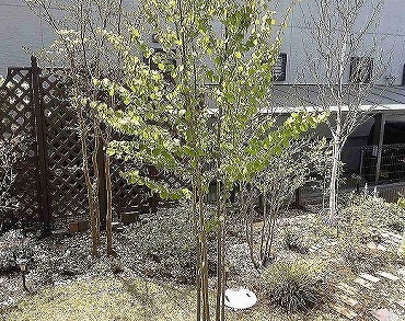 暖かくなった日曜日、桂の木が一気にハート型の葉を繁らせました。