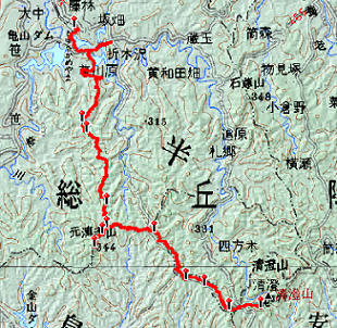房総の山は標高はないものの、結構アップダウンがあって歩くときつい。丹沢・奥多摩のように登山道が整備されていないので、道標もあまりないし踏み跡も微かである。地図に載っていない道もあるし、短時間で距離を歩いてしまうし、他の登山客と会うこともまれなので、迷うと大変である。
