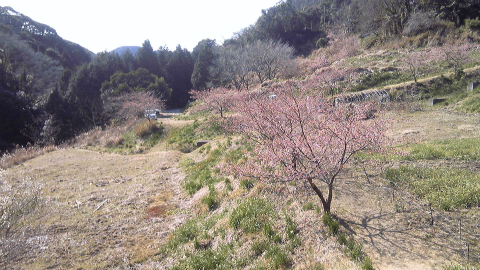 峠を越え水仙ピークへの分岐を経て駐車場に戻る。梅がきれいに咲いていました。