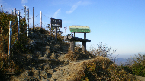 山頂から少し下ったところに「金平神社」の石碑のある祠がある。土台をコンクリで固めてあって、「上に乗らないでください」と注意書きがあるところをみると、上に乗ってお昼でも食べていた登山客がいたのだろうか。山の上にある碑や祠は、この土地に住む人達が長年大事にしてきたものなのだから、敬意を持って接したいものである。