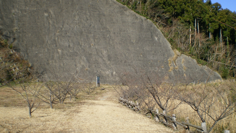 やがて景色が開け、梅と蜜柑の木が植わっている民家の裏手に出た。梅もきれいに咲いているし蜜柑もなっていたのだけれど、車が見えなかったのでいまも人が住んでいるかどうかは分からない。ようやく登山道から舗装道路に出た。「←小保田方面」とあるので帰り道は左の方向である。