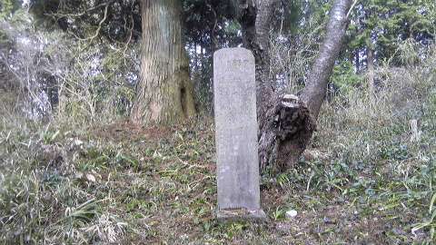 さらにスイッチバックの林の中を下って行くと、石碑の立った高台のような場所に突き当たった。いま風に石材店の作ったものではないが、墓石であった。いちばん大きいものは2mほどの高さがあり、「陸軍伍長」と彫られている。近くには寄らなかったので細かく見られなかったが、第二次大戦ではなく日露戦争のものかもしれない。