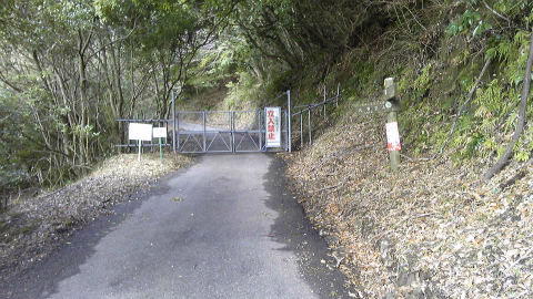 しかし、豊岡林道入り口には三角コーンが置いてあって「土砂崩れにより通行止め」と書いてある。WEB情報では北と南からそれぞれ工事をしていて、開通したのはつい2、3年前ということだったはず。ということは、開通して早々にまた通行止めということだろうか。いずれにしても、歩行者は大丈夫だろう(歩行者もダメだと、トラロープとかチェーンで道がふさがれる)。