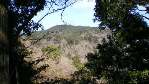 年末でもあり、この日の山歩きの無事をお願いして二礼二柏手一礼。いずれにしても、こうして一年つつがなく暮らして、のんびり山歩きを楽しめるのはありがたいことである。本殿を一周して山頂表示がないかどうか調べてみたけれど、見当たらなかった。その代わりに、西側に景色が開けていて、遠く東京湾、横浜あたりまで一望できる。