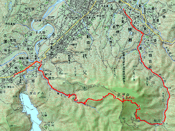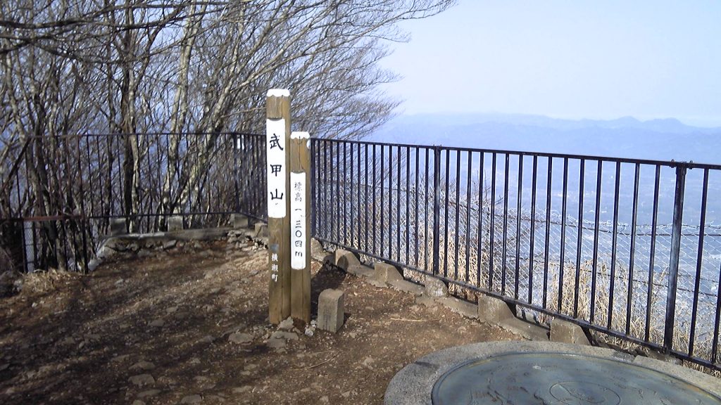 ベンチも何もない、休憩もできないし人数もあまり入れない頂上である。9時25分到着。4時間くらいかけて登って、秩父市街への展望が開けるのはここだけである。