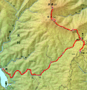 古礼山で元気一発ゼリーを補給したので、しばらくは快調だった。今回のキャンプでは45㍑のリュックが一杯になってしまったため、着替えも食糧もあまり持てなかった。前日の夕食も、カロリー源はさばみそ煮くらいで、あとはナッツとチョコレートなど酒のつまみしかとっていない。