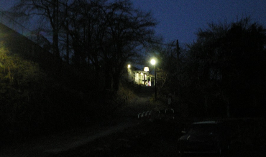 国道を戻ってコインランドリーで曲がると、坂の上が浦山口の駅である。電車が来たと思ったら、三峰口に向かう回送電車だった。まだ5時半過ぎなので辺りは真っ暗で、ヘッデンがないと危ない。ヘッデンを使うのは久しぶりだ。