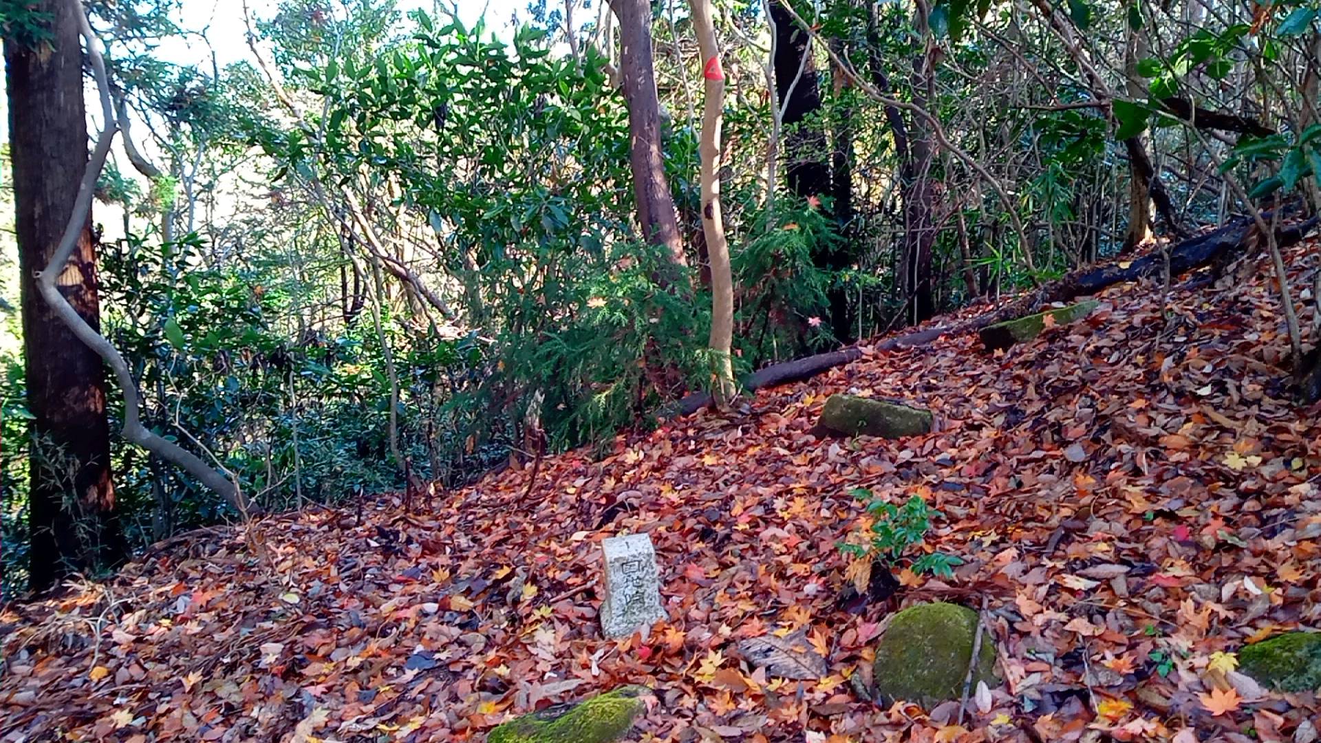 この山道で追い越しされた人とすれ違った人が一人ずついたから、誰も知らない道という訳ではないようだ。しかし、ガイドブックにも書いてないし、WEBで調べてもすぐには出てこない。1/25000図にも載っていない道なのであった。