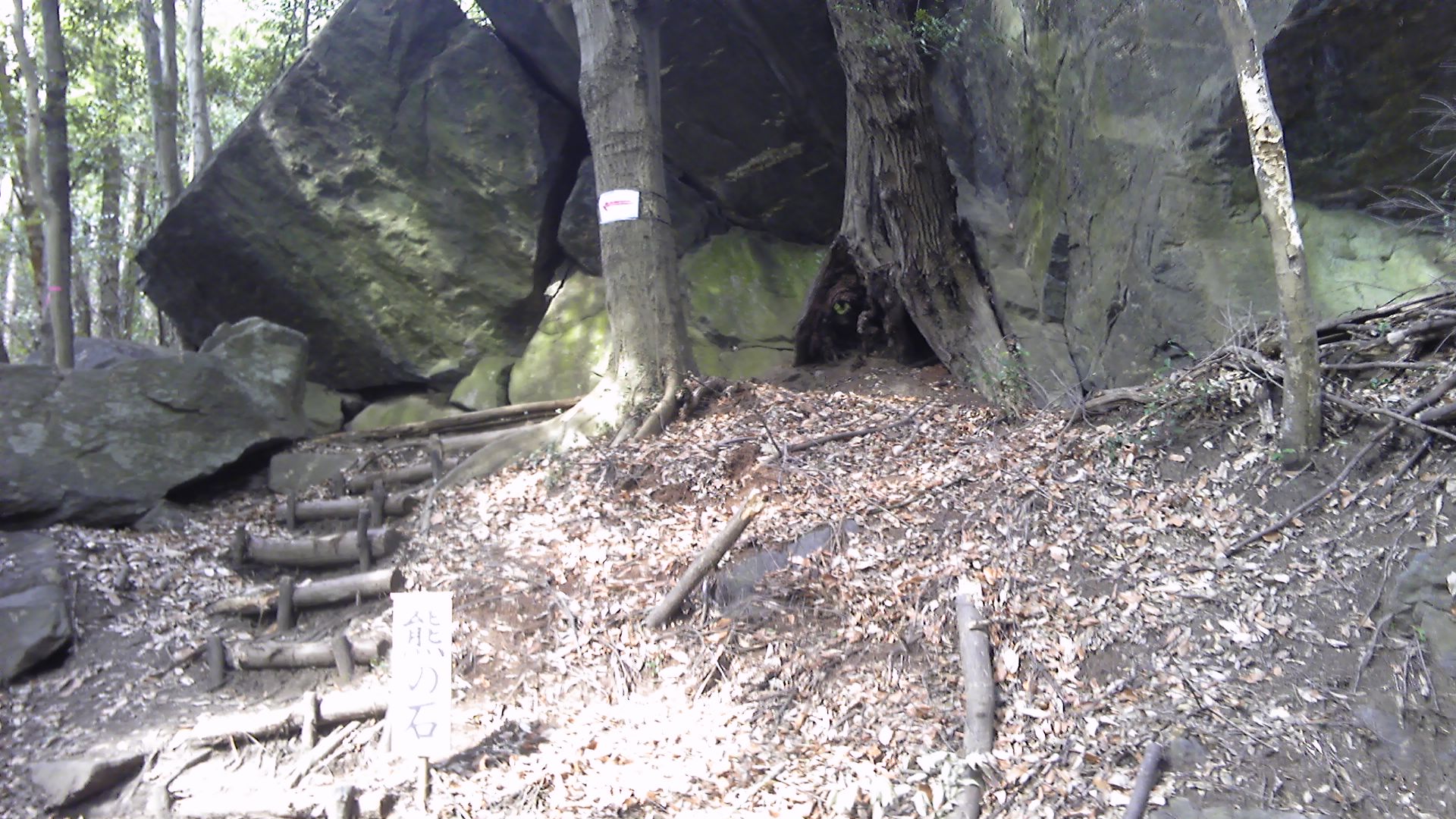 標高にして50mから360mまで登るのだが、傾斜はそれほどきつくない。沢のような地形に出ると、名前の付いた奇岩がいくつかある。それほどの水量はないが、岩の表面を流れる水が氷になっている場所もあった。