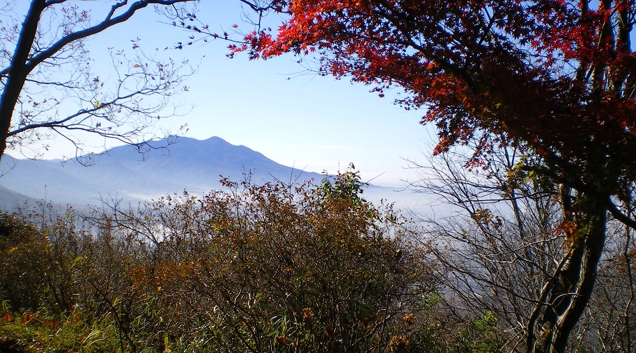 そして、樹間から次の大きなピークである浅間山が見えてきた。このピークにはお宮さん(何しろ浅間山である。多くの祠がある)と、雪入山系恒例のアンテナが立っている。巻き道があるので、今回はここは通らない。