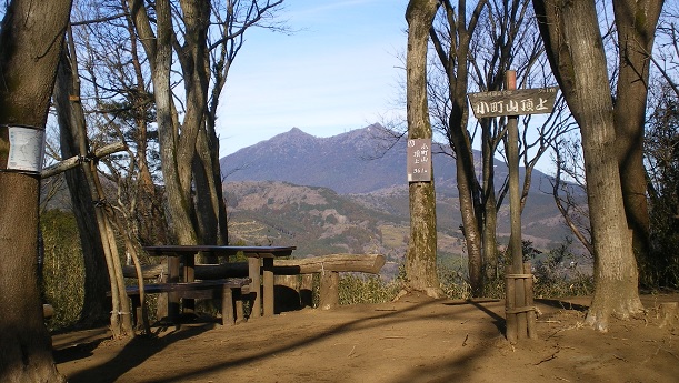 登山口から1時間ほどで小町山頂上。頂上にはテーブル付ベンチが4、5セット置かれている。