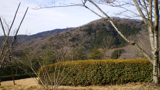 朝日峠の展望公園まで歩いてお昼にする。目の前には先ほど登った小町山と、宝篋山への稜線にあるアンテナが見える。