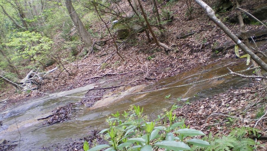 ところが、道が合流して沢を遡っても、なかなか前年に引き返した場所に着かない。当時のGPSでは東城寺の上まで来ているのだが、そこからの道はまっすぐには下りていないのである。