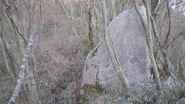 ひとしきり下って再び登り坂となる鞍部のところが「A-4分岐点」。ここを下ると小町の館方面に行けるはずなのだが、行先案内も赤テープもない。ただ、しっかりした登山道がここから下っていて、間違いようのない道である。