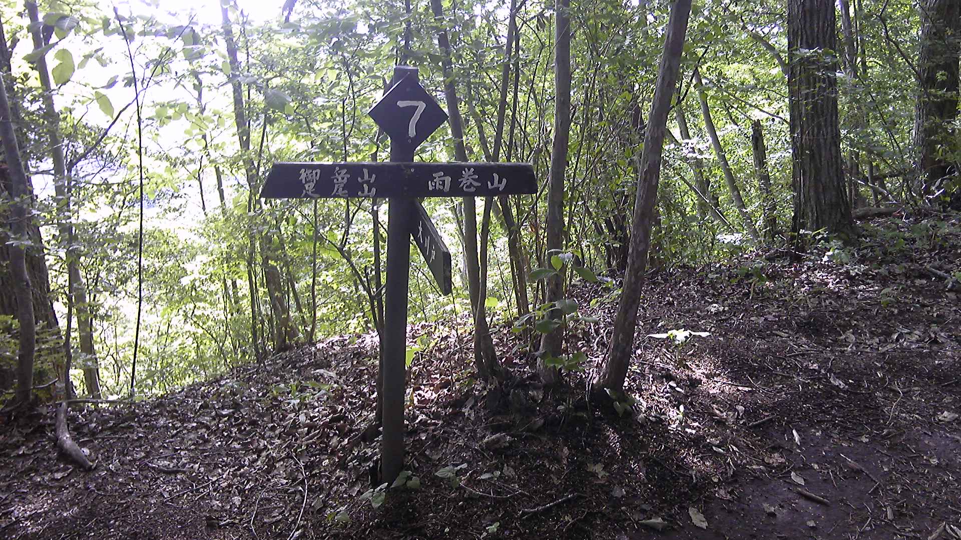 Googleによると、この近くにタイタニック岩という場所があるらしいが、名前からして絶壁に突き出た岩に違いないので探さなかった。山名標と7番の案内板を写真に撮って引き返す。
