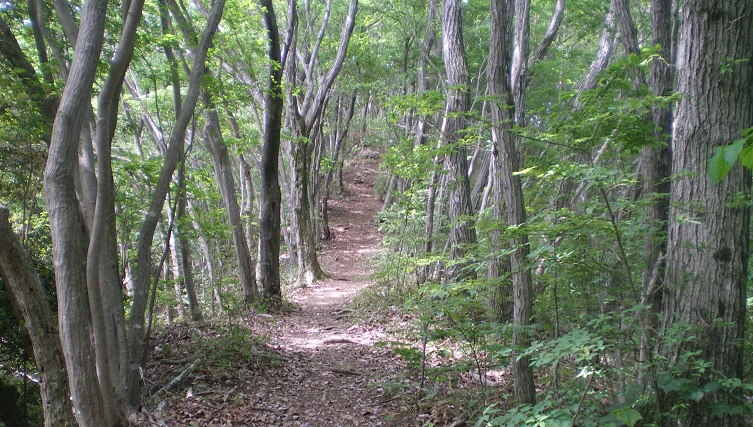 三登谷山から大川戸まで、ようやく下り基調の道となった。この日はなだらかな稜線歩きを期待していたらアップダウンが続き、累積標高差は900m近くなった。とはいえ、コースそのものは整備されていて、薮漕ぎしたり岩がごつごつということもない。